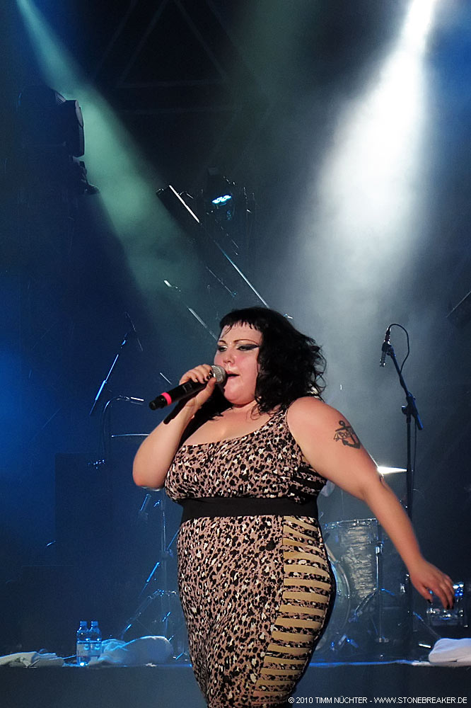 With a sold out show at Frankfurt’s Jahrhunderhalle, Gossip kicked off their 2010 German tour. Beth Ditto made a very vibrant performance with many personal little stories.