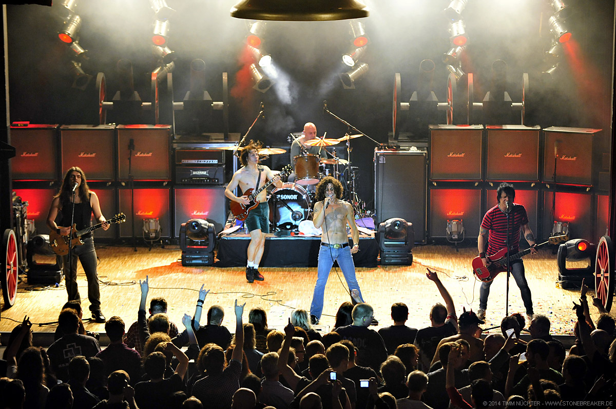 Sean Mulvihill, known as the ingenious lead singer of Los Angeles’ AC/DC tribute band “Bonfire” took the plane from LA to Frankfurt, in order to give his 5 cents as ‘Bon Scott’.